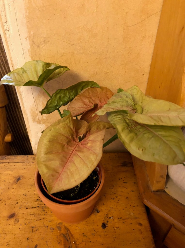 But now I happily have a replacement. Arrowheads are one of my fave houseplants. They grow so well with minimal care. And of course, I adore plants that have pink in them.