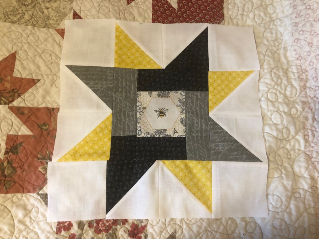 I’m sorry about the cold hanging on. Don’t let it go too long without getting checked. You don’t want it turning into pneumonia. That block is perfection. I love bees.