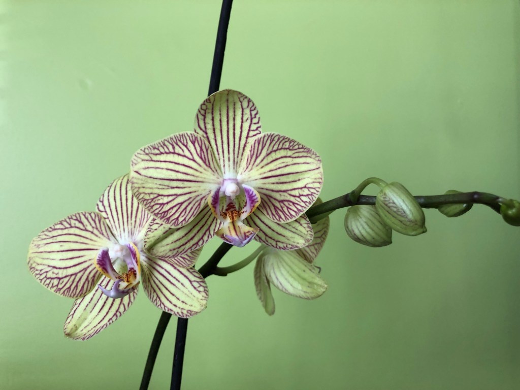 One of my orchids has rebloomed. This is one of my newer orchids (I bought her late last year after a trip to Mom’s), and her first bloom spike died off just before Christmas. It was a surprise to see her blooming so soon, but a welcome one!