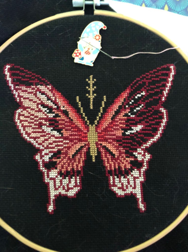 I might be able to finish the rest of the butterfly next weekend, then I’ll be starting on the greenery! This one is going much quicker than I expected.