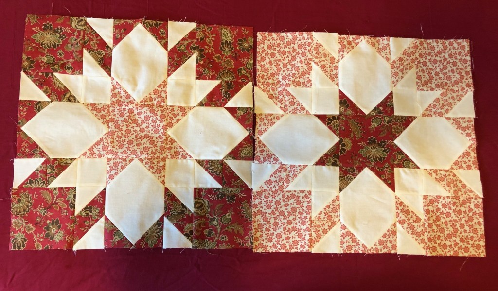 I’m still two short, but I couldn’t resist laying them all out on the bed. Once sewn together, I think they will cover the top just perfectly. So I can keep the borders simple. I’m thinking a thin cream border, followed by a wider print border.