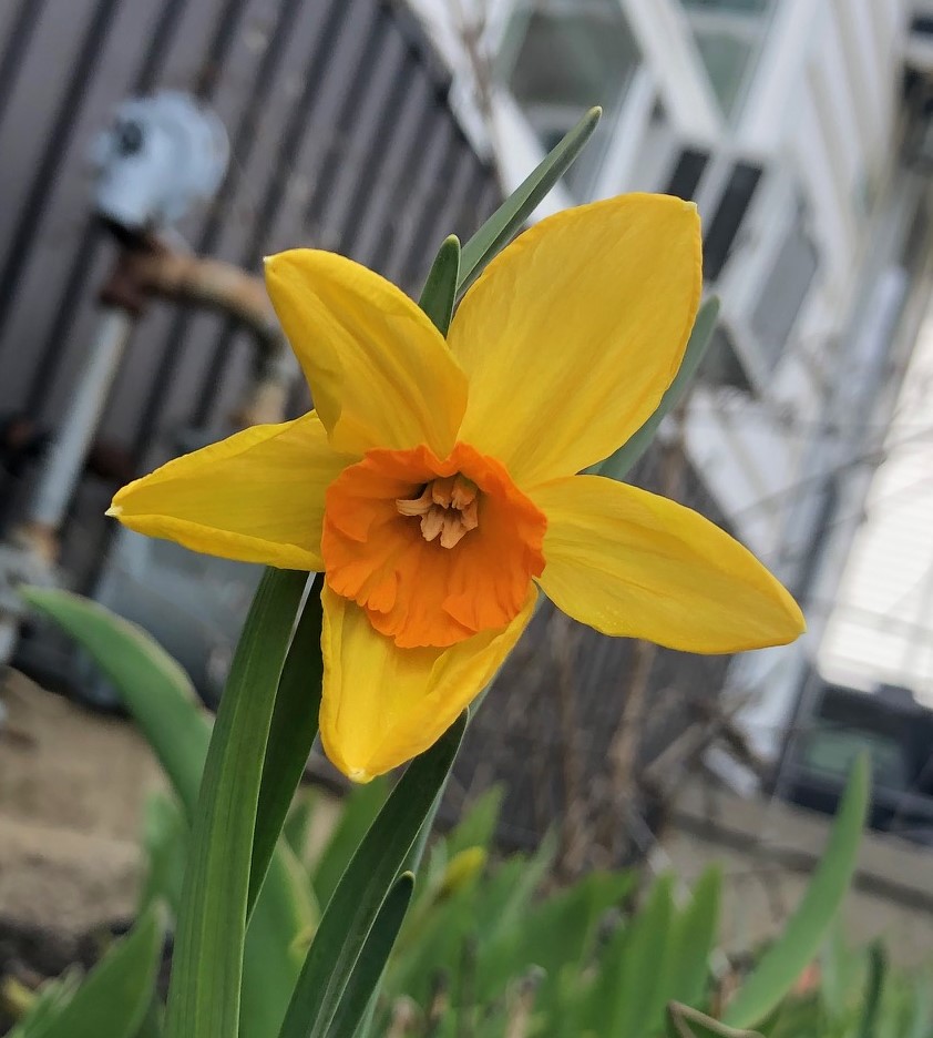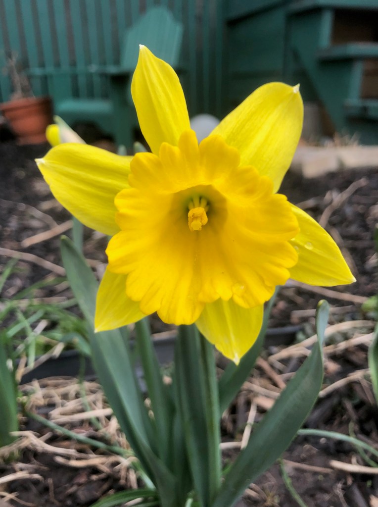I was walking to the post office on Wednesday, admiring daffodils in my neighbours gardens, including some yellow one with bright orange centres. And then what did I spy in my OWN garden when I got back?