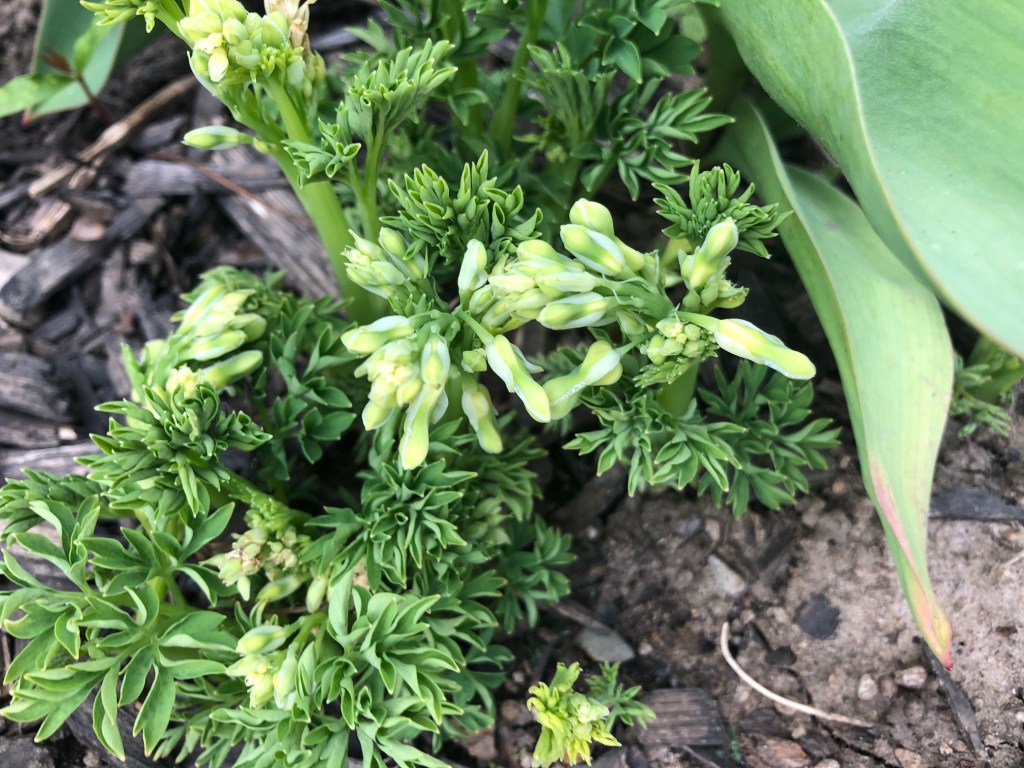 And are also of the lily family. (I have orange and yellow elsewhere in the garden). And I’d just chalk the whole thing up to a mix up in packaging… except I am almost positive there were only TWO bulbs in that pack… and I have TWO plants coming up elsewhere that I’m 99% are Crown Imperials. I can’t be 100% they are peach ones until they bloom. Such a mystery.