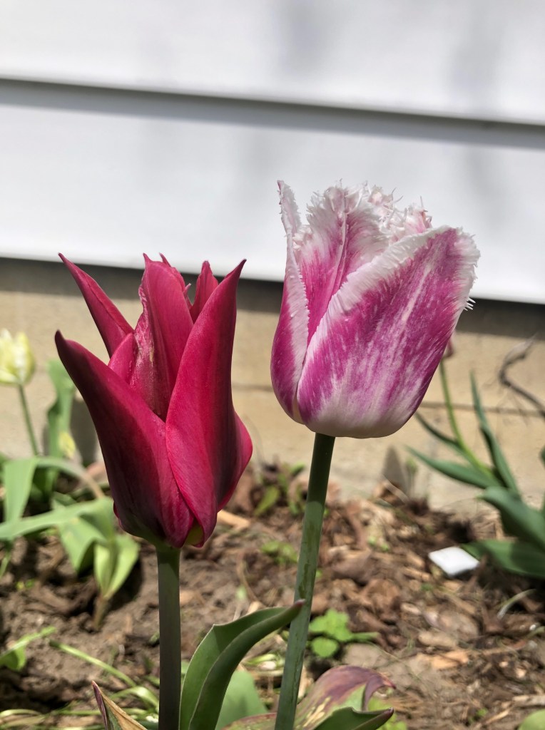And you may or may not know… that not all tulips are perennials. Some of the fancier tulips (like the frilly parrot tulips) don’t tend to come back. And if they do, it’s usually only for one more year, and they are much smaller than the first year. It’s the simpler Darwin and Triumph tulips that tend to make a longer show.
