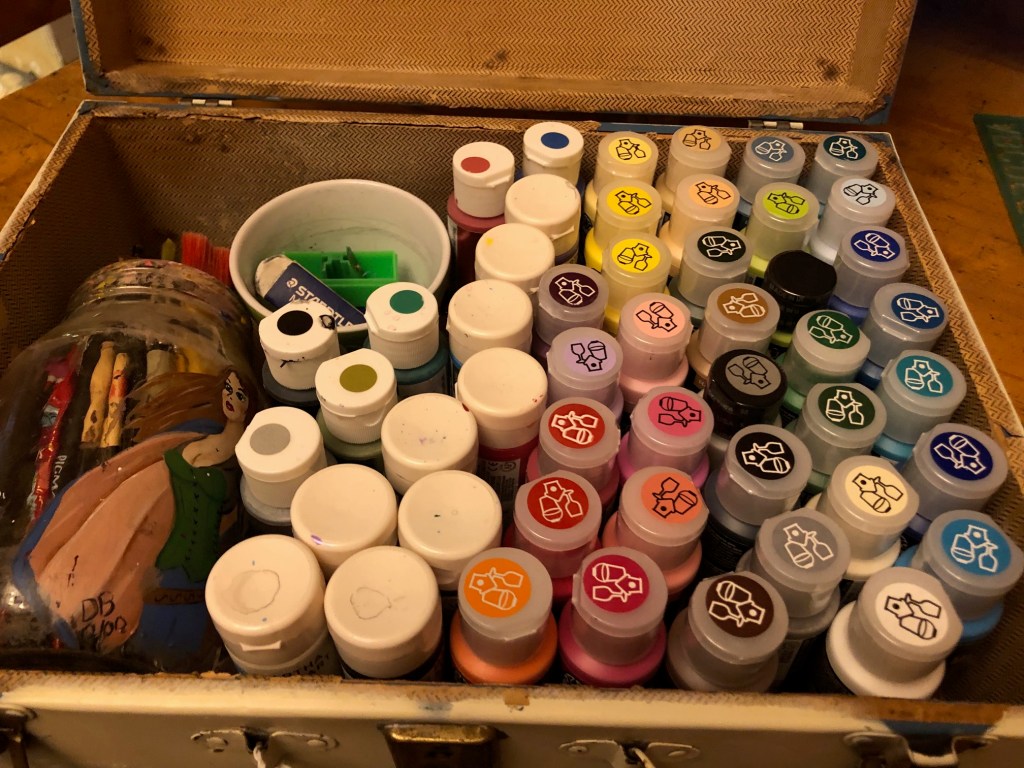 And besides… they fit just perfect in my paint box, along with the few older paints I kept (Dave took the crappy CraftSmart.. I don’t know what he thinks he’ll use it for, but he wouldn’t let me throw it out)