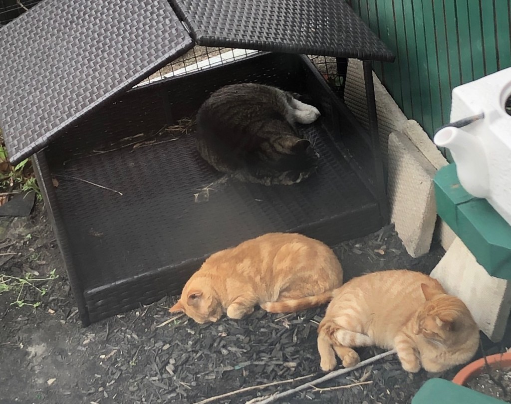 Now that the weather is mostly warm, it’s not unusual to look out in the catio and see this…