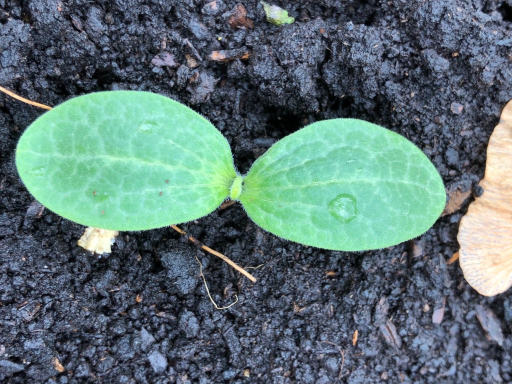 Cucamelon. Apparently, Cucamelons can be on the tricky side to get going, so I’m happy to see this tiny sprout.