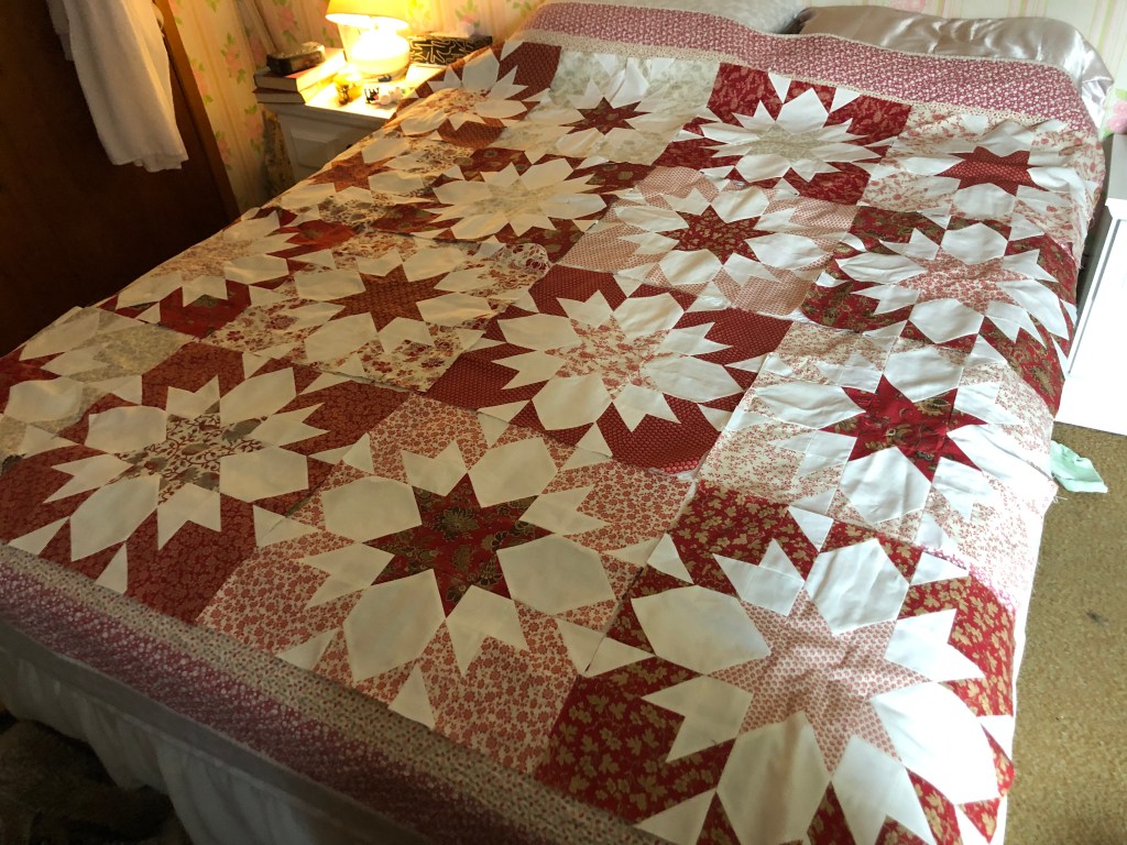 How wonderful that you and your Mom had your own quilt retreat. That red and white quilt is just stunning and it’s not even complete.