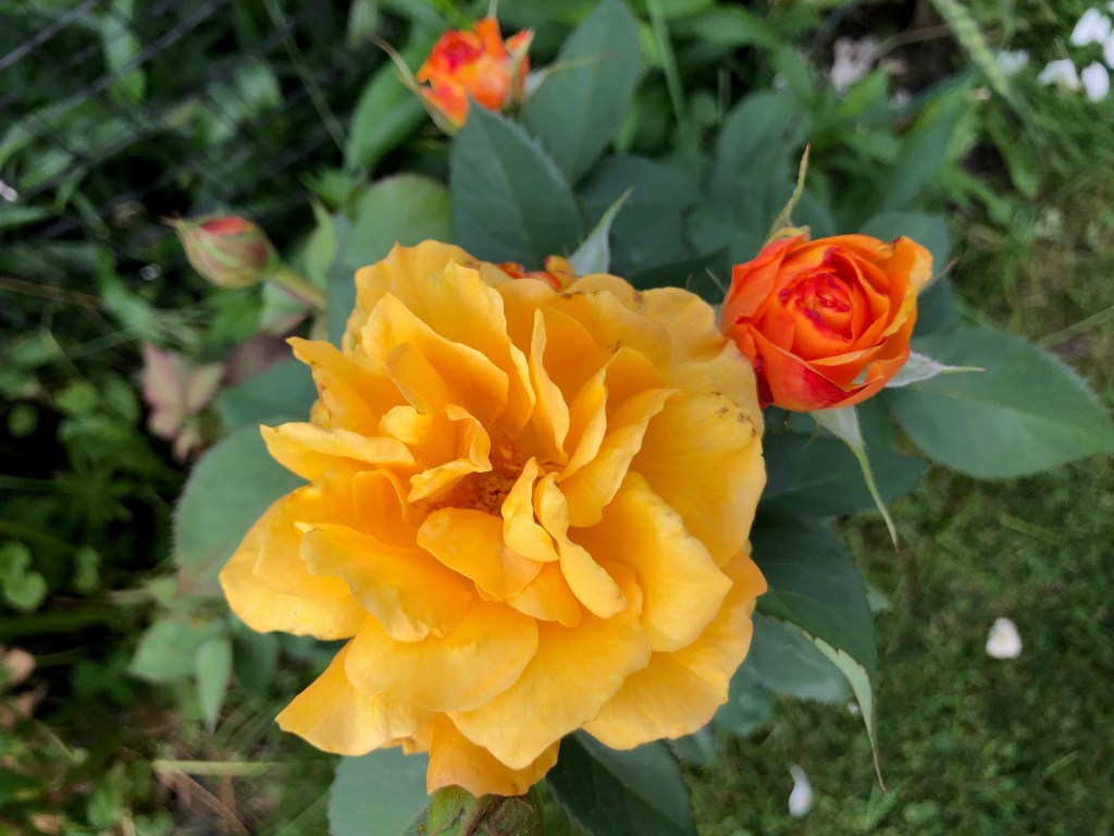 And is there anything more cheerful than a yellow rose? Right is Mellow Yellow, centre is Good as Gold, and left is a miniature yellow rose.