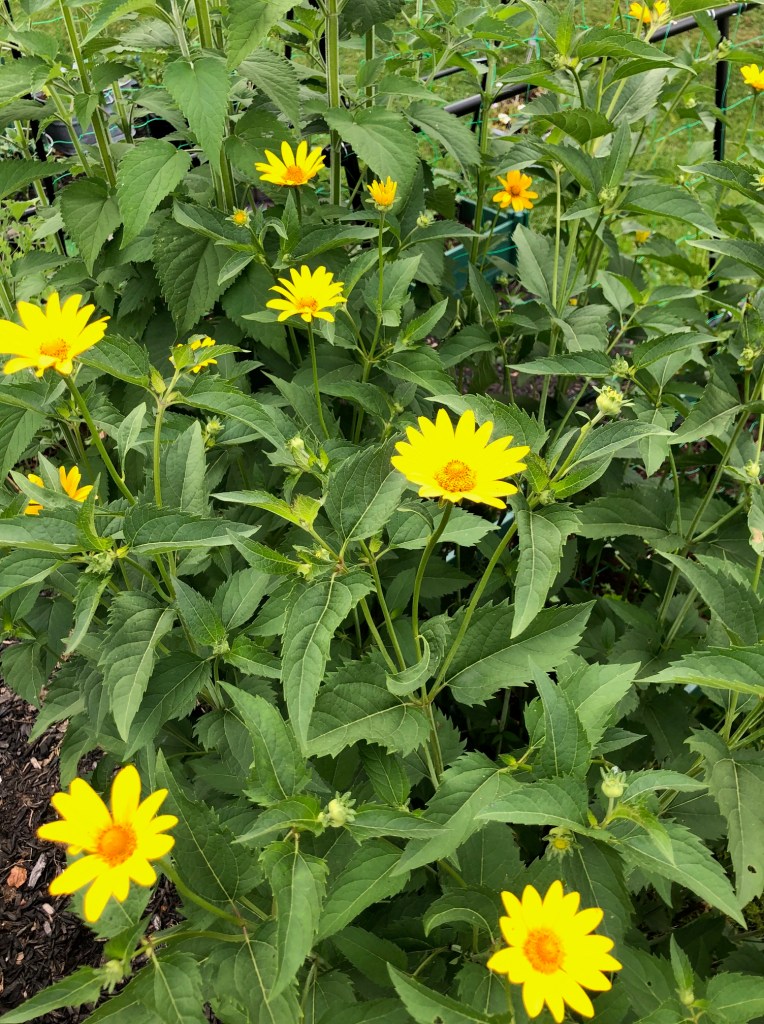The Marguerite Daisies (left) and False Sunflowers (Right) are cheering up the border around Edible Alley. I had to get ruthless with the Marguerites because they tried to take over their corner of the border. They are so cheerful in bloom -and a mega pollinator magnet.