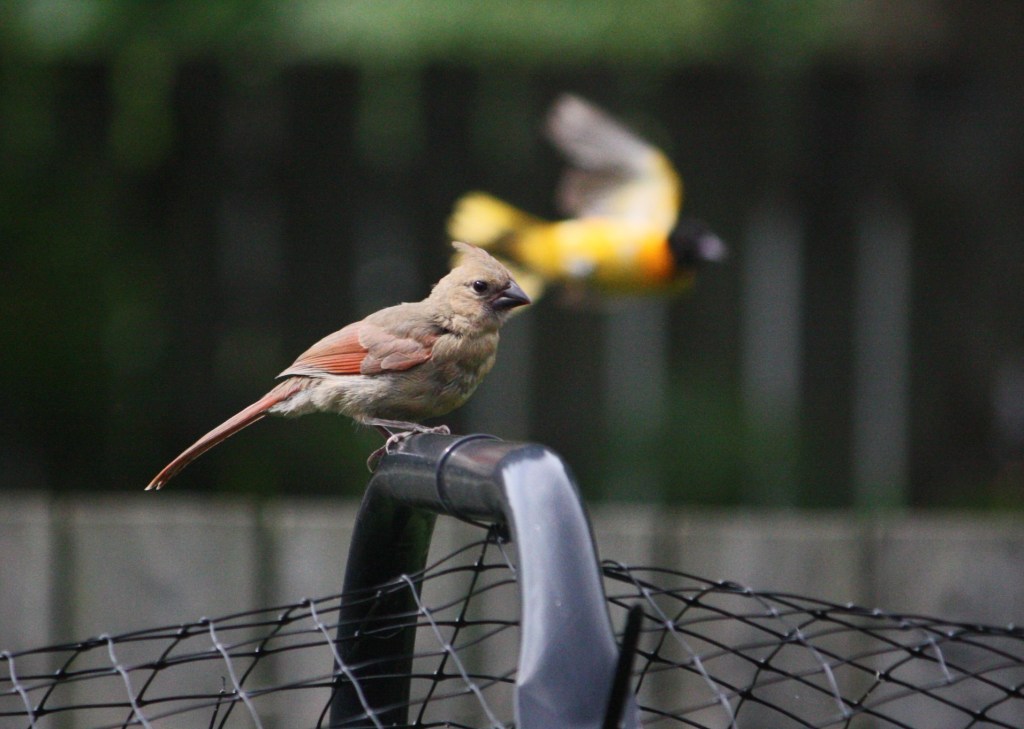 Like this one of Mrs. Cardinal. The cardinals are VERY elusive here – especially the females. But this one hung out on top of the catio fence for quite a while.