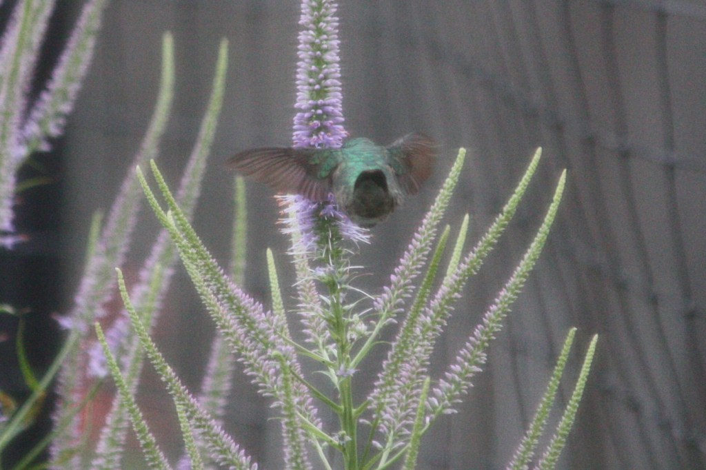 But I finally got a picture of the darn hummingbird. There hasn’t been as many as last year – my Honeysuckle had a bad case of aphids this spring, and it didn’t get many blooms. It’s set to bloom again though – and my neighbours trumpet vine is starting to bloom so I expect to see them a little more.