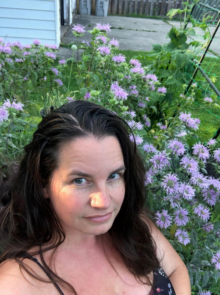 I’m five foot seven, and it’s a little taller than me. A lot of the bigger plants are starting to flop from all the rain, so while you’re reading this, I’m hopefully out in the garden getting it all staked up, as well as weeding (they love the rain just as much!) and getting the gardens looking respectable again.