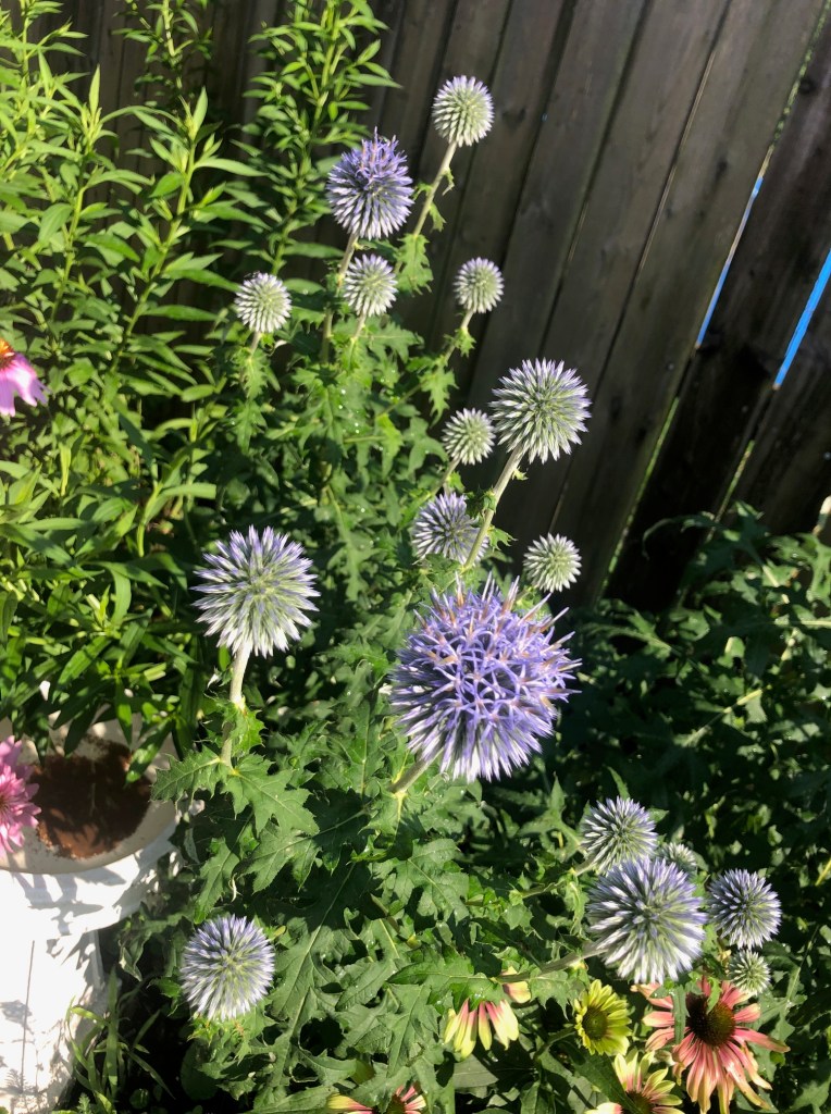 The Globe Thistle is starting to bloom. It’s odd looking, and a little on the prickly side (not too bad though), but it’s a pollinator power house and I love how it looks in the garden.