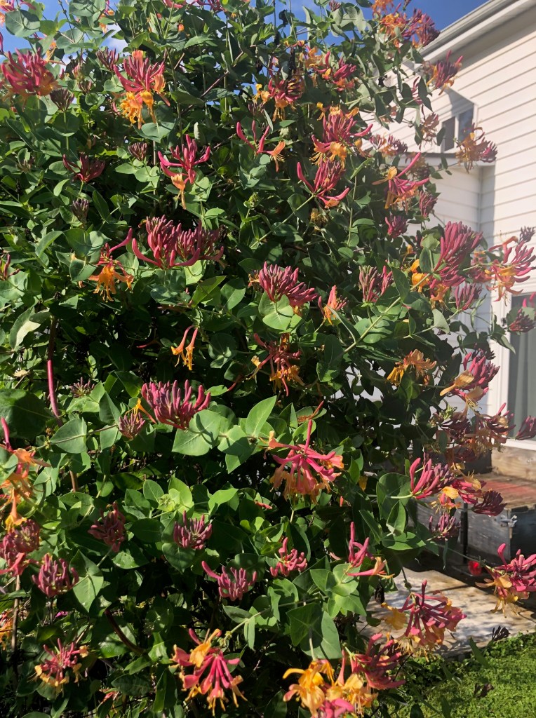The catio Honeysuckle had a hard start to the season – it got hit hard by aphids. But they’ve all disappeared and it’s bounced back beautifully and its blooming again. It’s a favourite of the humming birds.