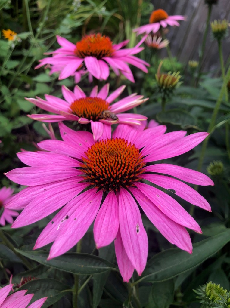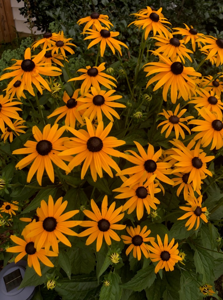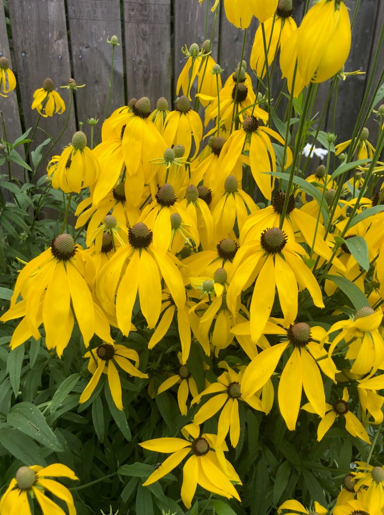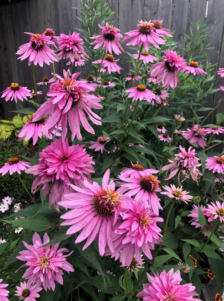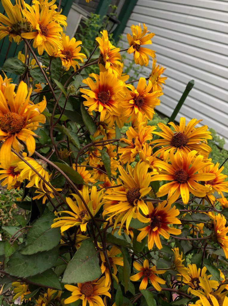 The Honey Suckle on the catio fence also had a sad start. In spring it was hit hard by aphids and barely bloomed at all. But thankfully, this one is a re-bloomer and just look at her now! Both Dave and I have seen the hummingbirds stopping by for a sip on multiple occasions.