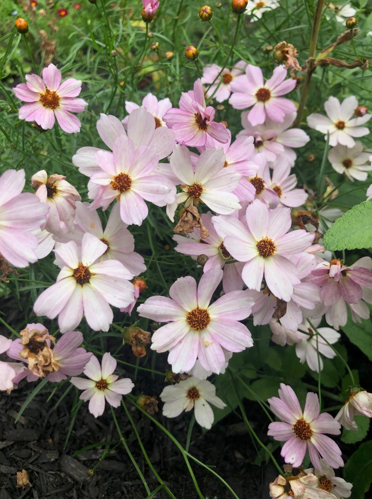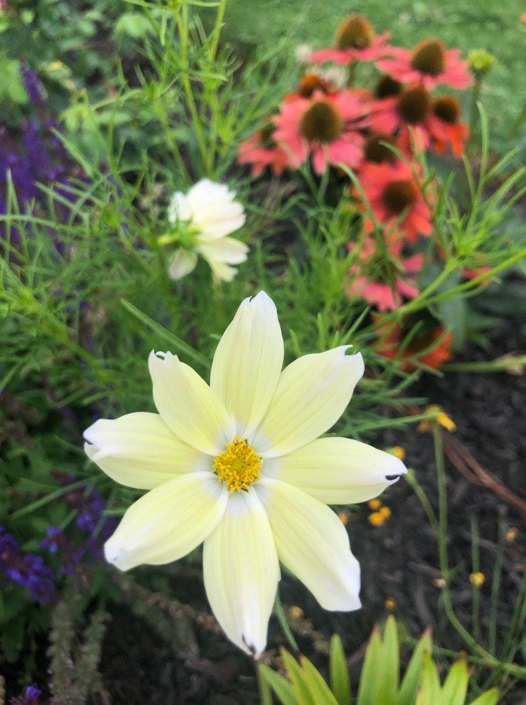 Of the cosmos seeds I started in the peat pods, I only got a couple plants. This is one, and I’m so glad it made it. It’s called Xanthos and it’s just the prettiest shade of pale yellow. I have a couple other cosmos in the front garden that seeded themselves naturally, but they aren’t blooming yet. Next year, Im going to plant more – but directly!