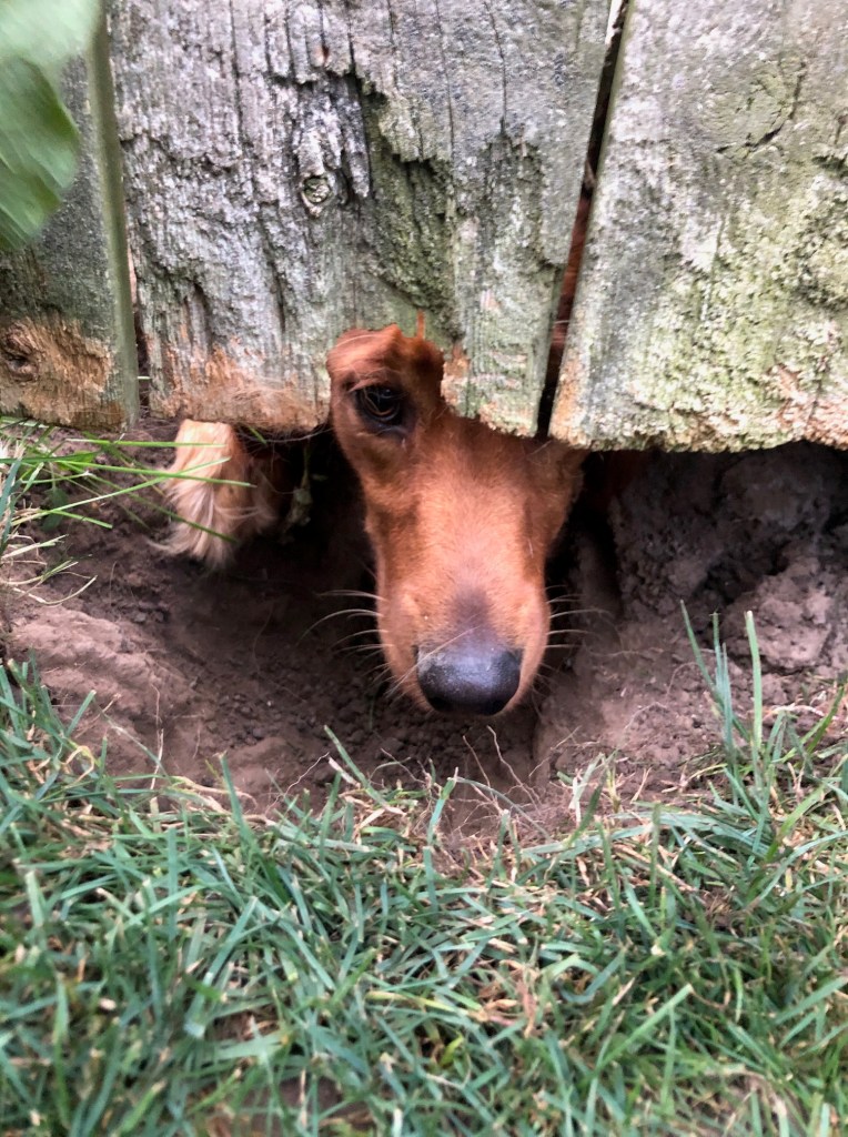 But she also knows she’s not supposed to dig holes, so when you get close, she goes back to her side and tries to look repentant.