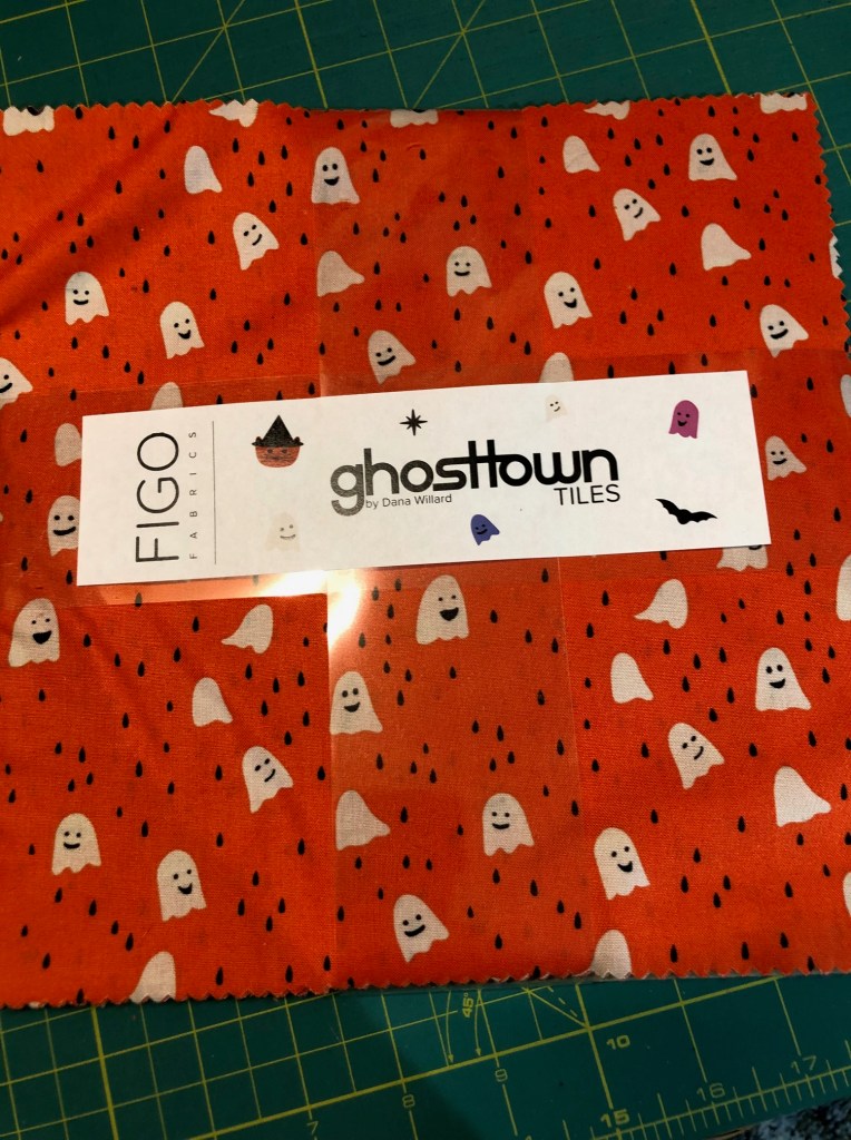 Last year, Mom and I went on a bit of a flurry buying a tonne of Hallowe’en fabrics. I bought mostly yardage, but I did get this layer cake, which was a mix of dark orange, pink, purple, grey and black Hallowe’en prints.