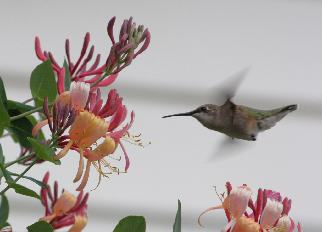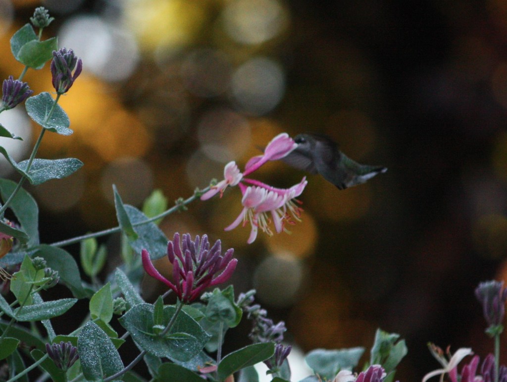 All summer, I’ve been on a quest to get a picture of the hummingbirds. My neighbour has a trumpet vine, and I have the honeysuckle and butterfly bushes, so we get a lot of hummingbirds without every having to worry about putting out feeders.