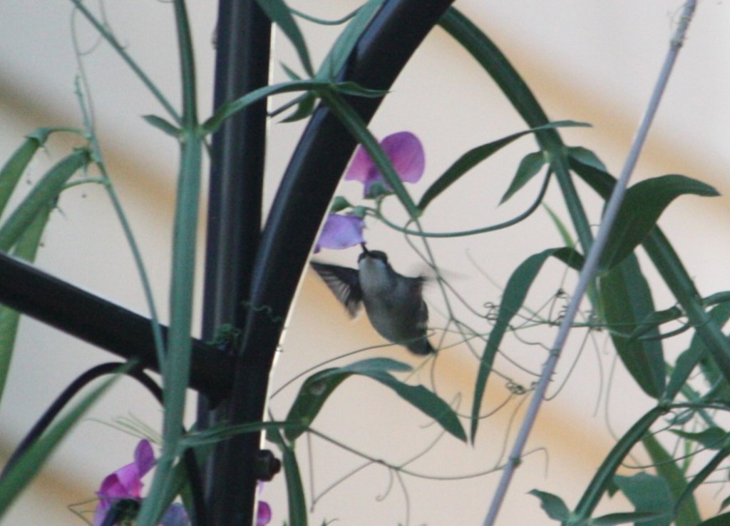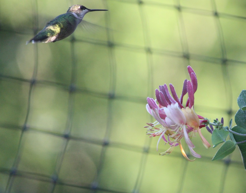 The first morning started out ok… I started out on the steps of the catio, and a hummingbird quickly appear at the Honeysuckle on the far end.