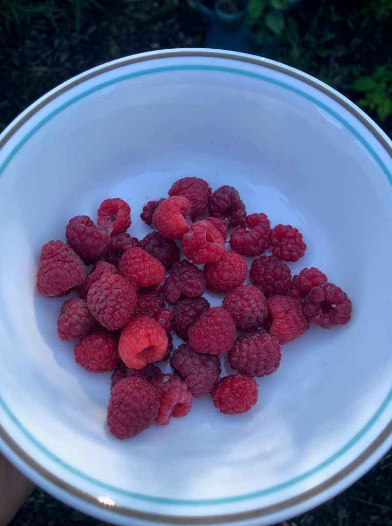 It’s prime raspberry season and I’ve been enjoying a bowl of fresh raspberries on the daily! I also have golden raspberries, but I’m saving all of them to make jam. Simply because I’ve never had golden raspberry jam! The golden ones are a touch milder than the red berries and I think they’ll make an amazing jam!