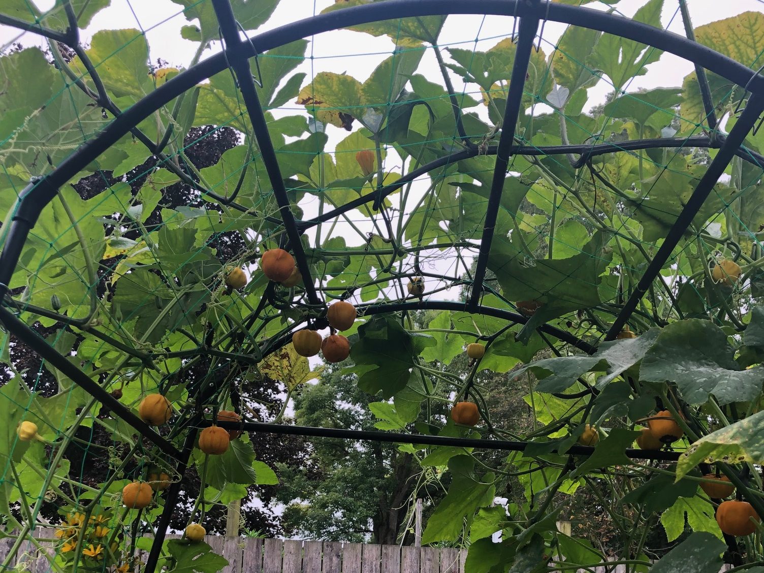 I will definitely grow them again next year – though I think I will try them in a pot with a trellis, saving the space on the squash tunnel for something bigger. Their leaves are very small and they are in danger of being overtaken by the gourds if I don’t stay on top of things with a pair of pruners.