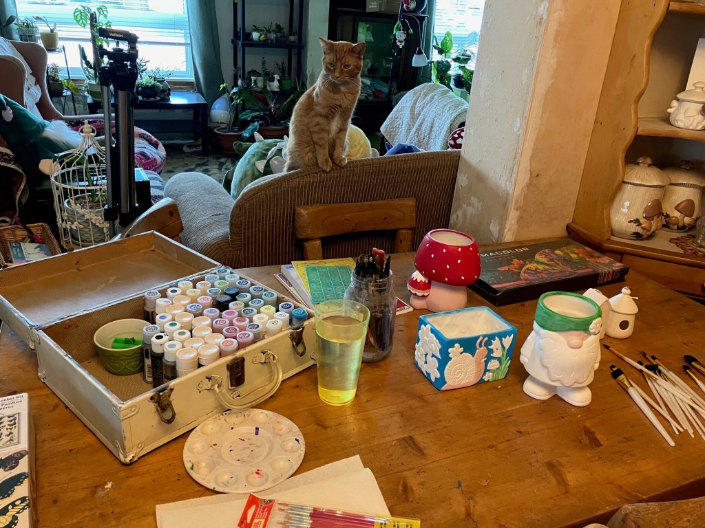 1. Those little ceramics are so sweet! I’m happy to hear I’m not the only one with multiple projects all over the house. I just had my Prismacolor pencils out for The Mister who insisted on coloring in one of our Christmas gnomes to see how he liked it. He hates using the alcohol markers but agreed they are faster and brighter than the pencils.