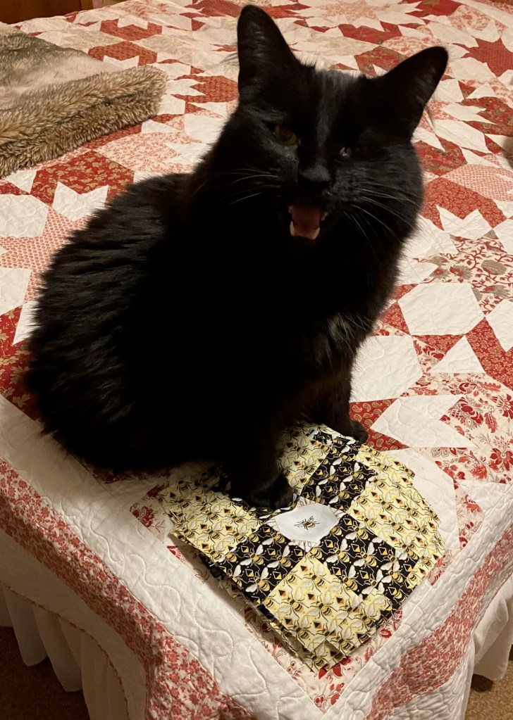 But LBB also has notoriously good taste so I’d let him take his time. Meanwhile, I absolutely adore those bee nine-patches. I’m in love with all of the bee fabrics and knick-knacks out in the world right now. Some people it’s owls, others it’s chickens, with me it’s bees!