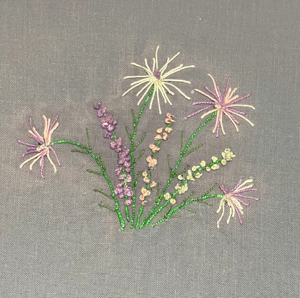 Your french knots look great and although I know lazy dasies take some time to learn, you did wonderfully on those too. Another hobby you’re mastering. 🙂