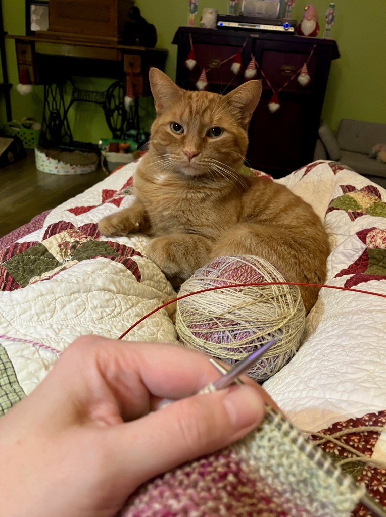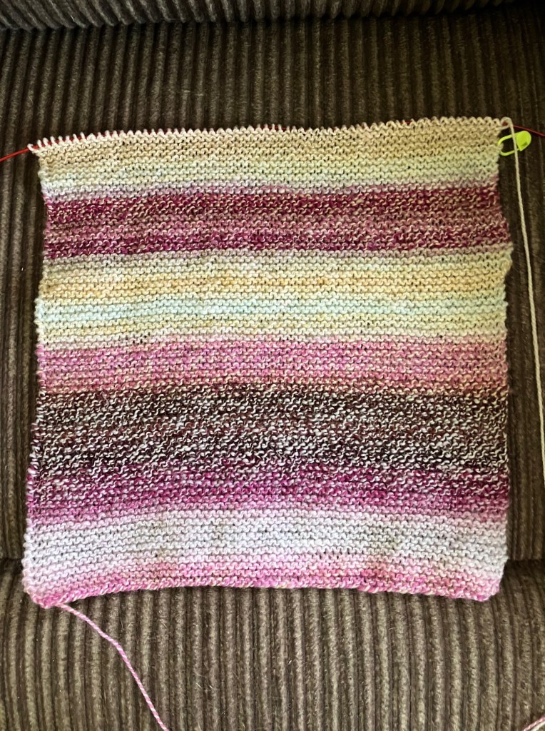 In the mean time, there’s not much for me to do, so I’m putting my feet up to do a little knitting.