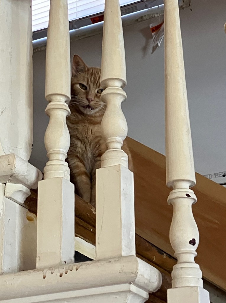 Oh, good golly! What a face. The one thing about my inside ferals is that they do not make eye contact. Even if they are in the same room they completely ignore our existence. They will yowl if they are hungry but will disappear until we leave the area before they will eat.