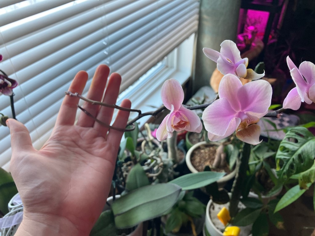 I have a little pink moth orchid; it blooms twice a year! I don’t do anything special for it. It was a birthday present in September 2020. So sweet.