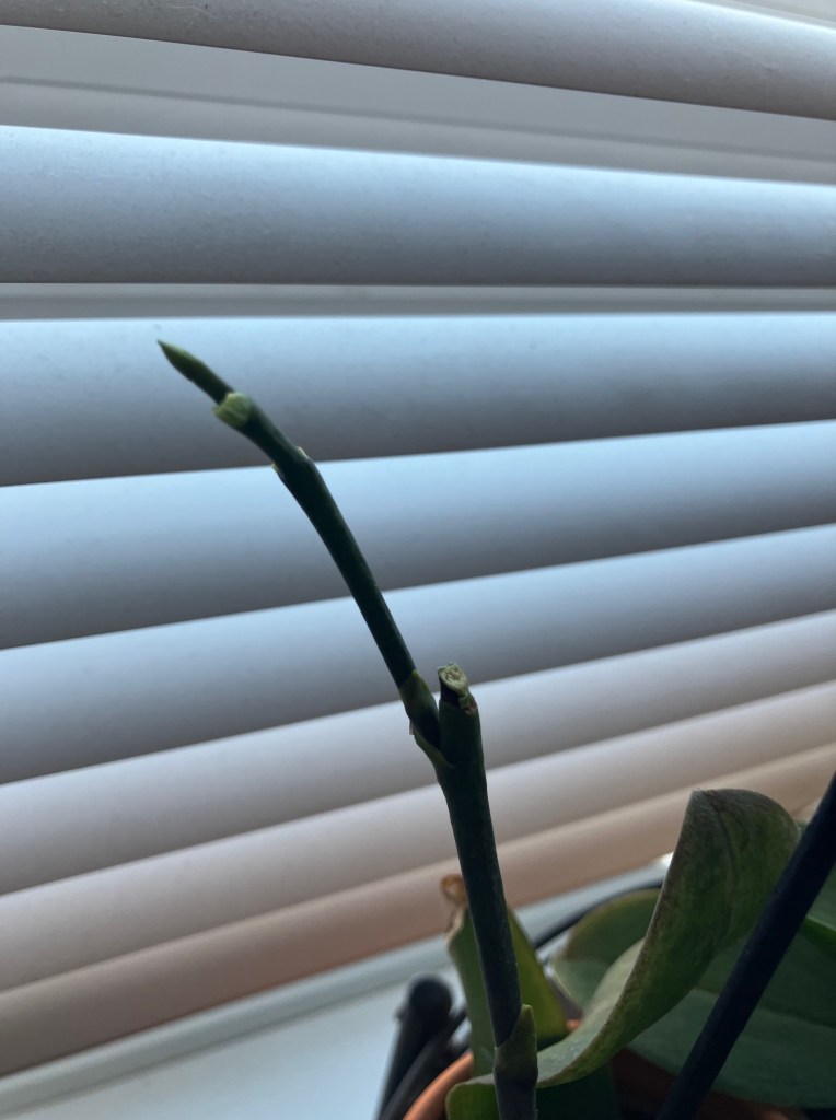 My light pink orchid (which was bought before Christmas at Walmart) had put out a couple bloom off shoots from the original bloom spike. I know they can do this, but I’ve never seen it happen when there are still flowers on the first spike