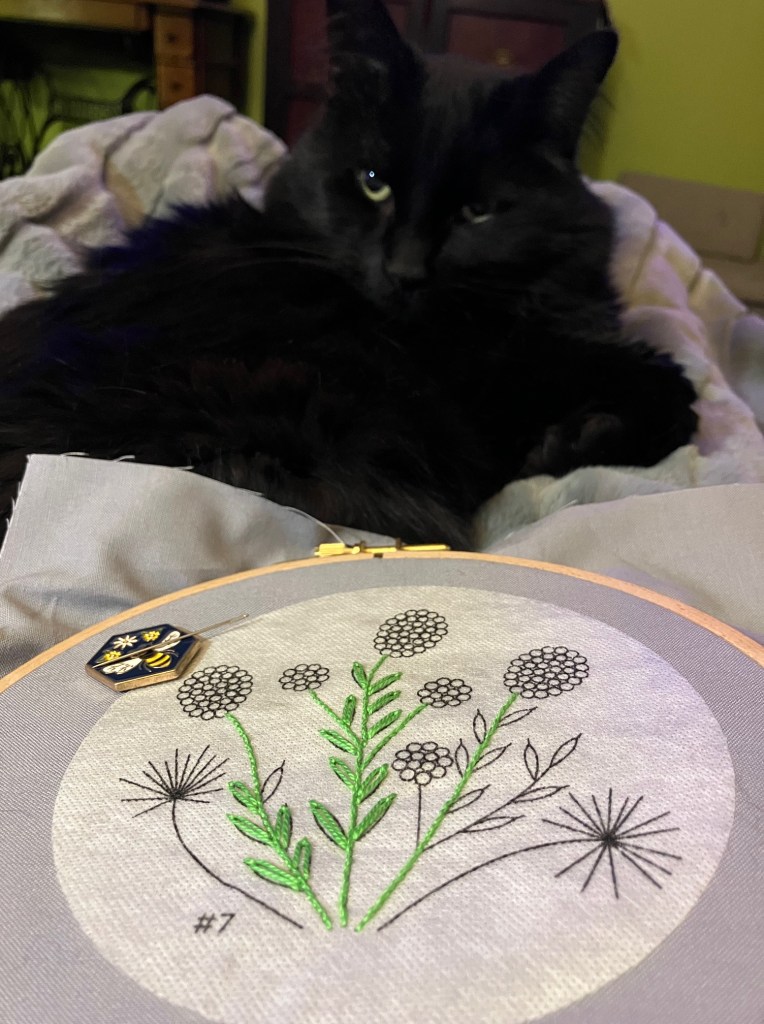 1. LBB is the BEST snoopervisor. I just love him. The stitch kit is going to be another pretty one and you’ll be a french knot pro by the time you’re done.