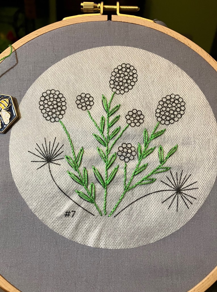 Those side flowers will go pretty quick… and then it’s onto the French Knots. This kit REALLY loves the French Knots!