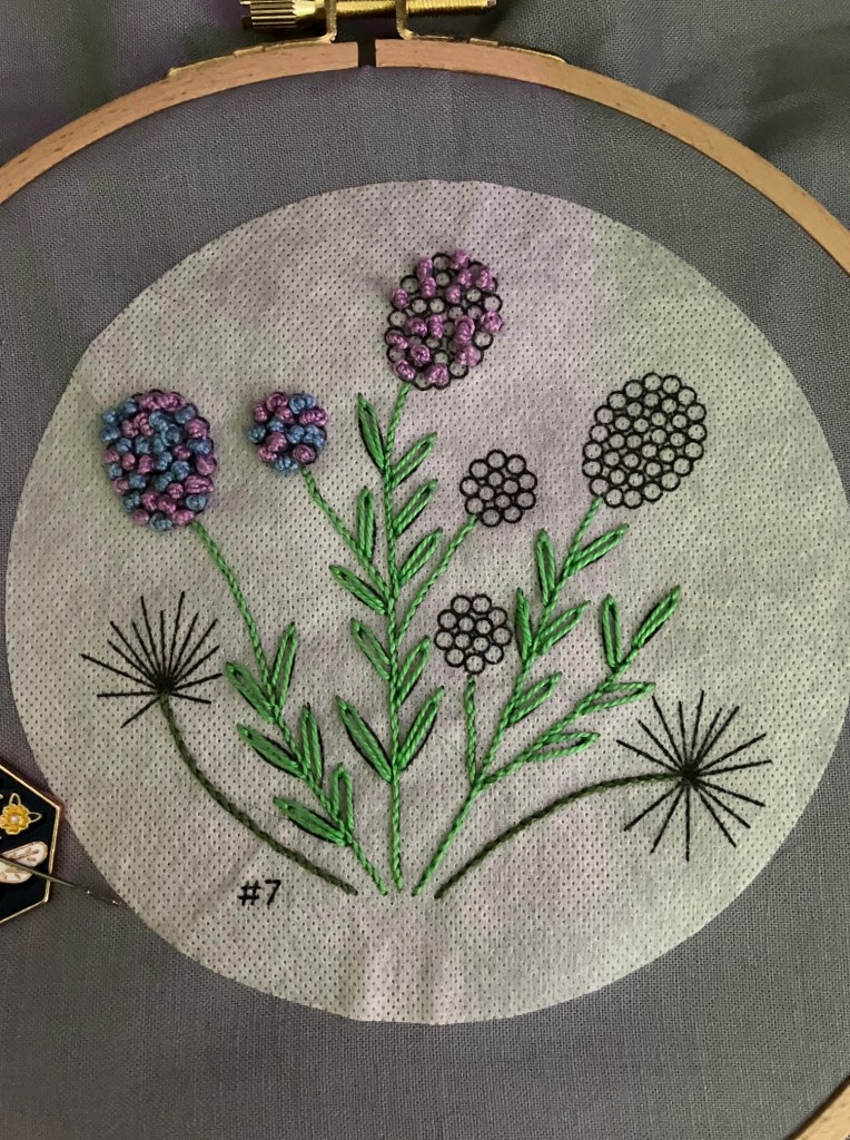 What you have stitched is beautiful! I don’t think I have seen a project with that many French knot stitches.