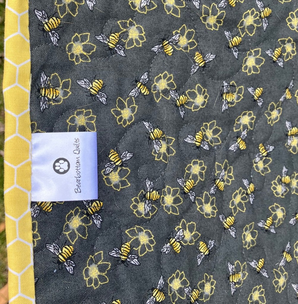 For the back, I got some great charcoal grey bee-themed yardage on sale.