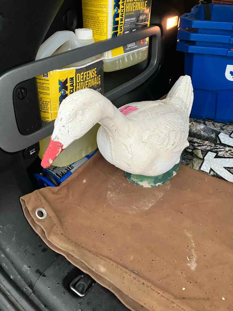 Every since we bought the house, I’ve wanted a porch goose. But did you know porch geese are hella expensive??? At least around here – good luck finding a concrete one for under $150. Even the plastic ones on Amazon are $100.