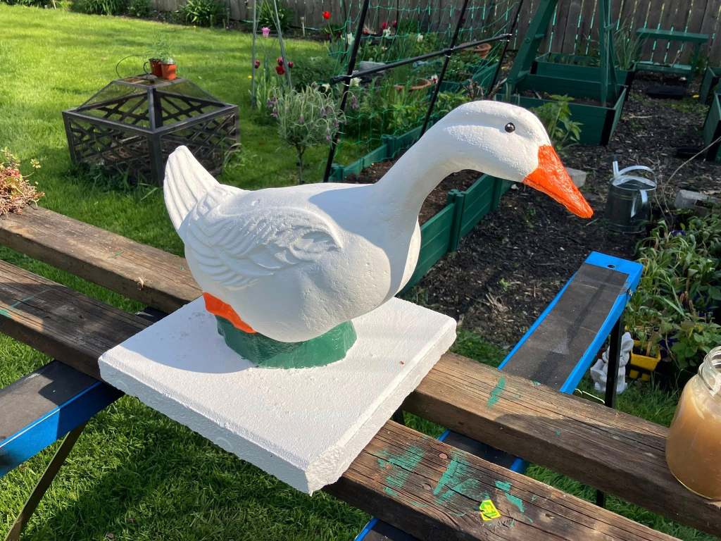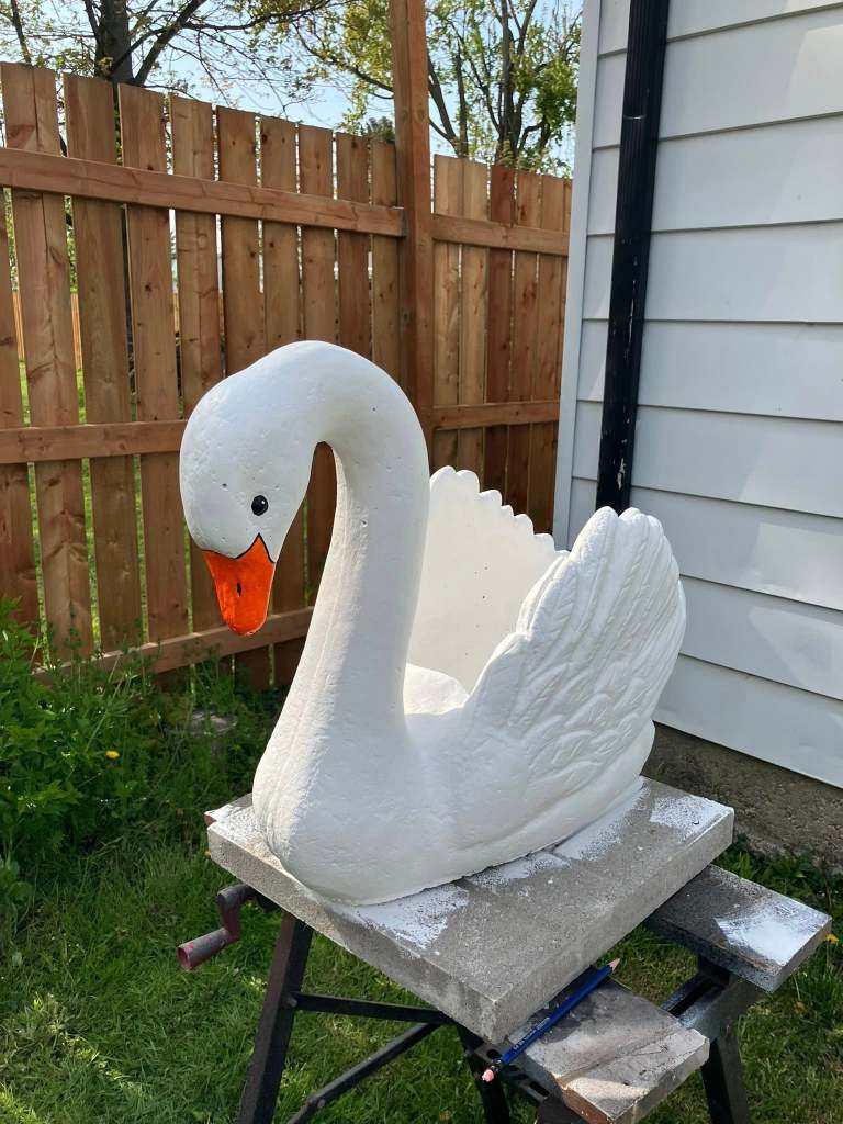 He also did the bulk of the painting on my concrete goose and swan – ie – painting them white. Again, here he’s much better suited to the job than I, as he was more focused on getting paint into every little nook and cranny of the concrete.
