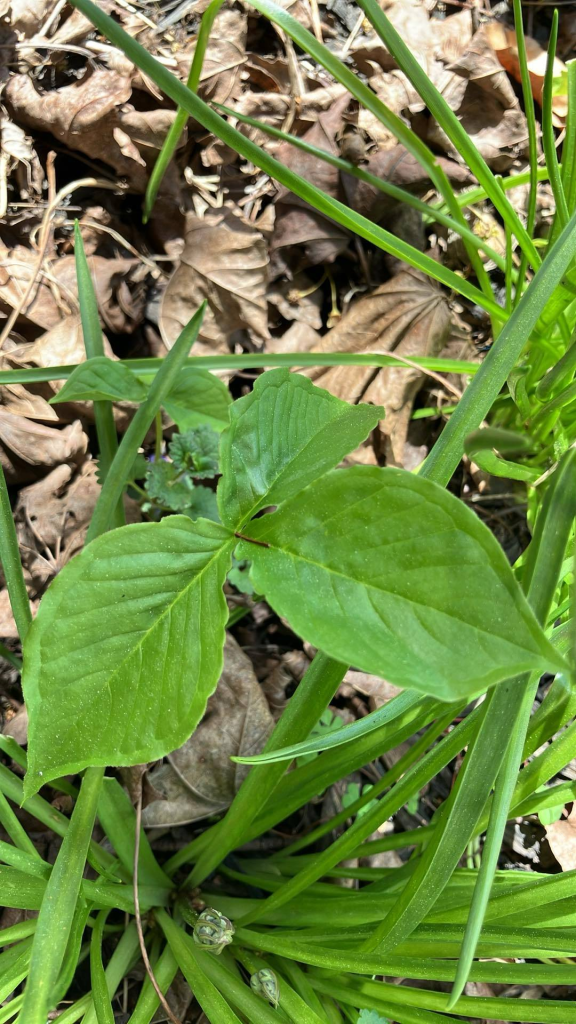 And I was very excited to see these return. They are trilliums. Unlike Jack, I played by the rules and got them legally from a Garden centre. I bought two or three last year, and I didn’t think they made it through the winter. But all of a sudden, boom – there they were the other day. I don’t know if they will bloom or not. They can take anywhere from 5-9 years to do so, I and don’t know how old they were when I bought them. But I am just thrilled they are coming up.