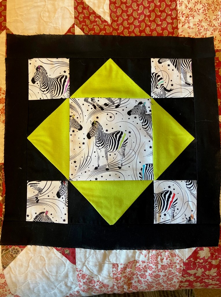 It was another easy block, and we made it even easier by swapping out the centre four-patch for a fussy-cut solid block.