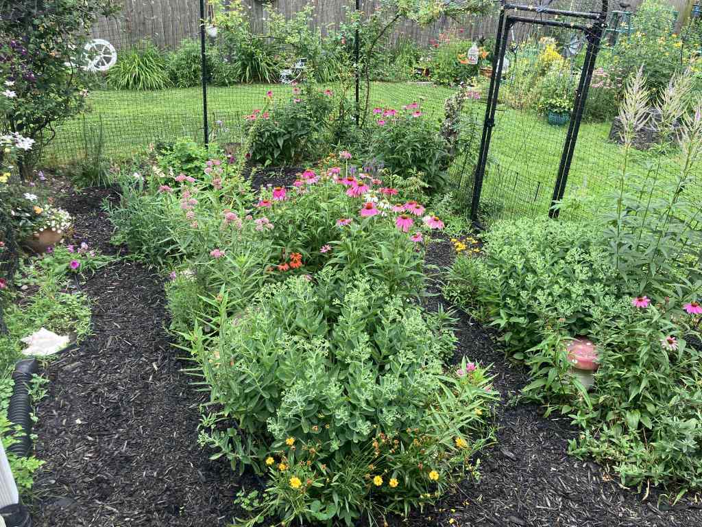 How about all those pink coneflowers that are in the middle? Yeah. They weren’t there in 2023. Nor were they there in 2024. (I don’t have a picture so you’ll just have to believe me.) I only had pink cone flowers in the far right corner and the near right corner.