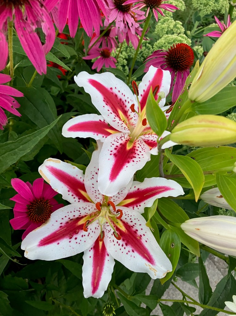 August is here and though the heat and humidity get to me, it doesn’t really seem to bother the garden. The daylilies are in peak form