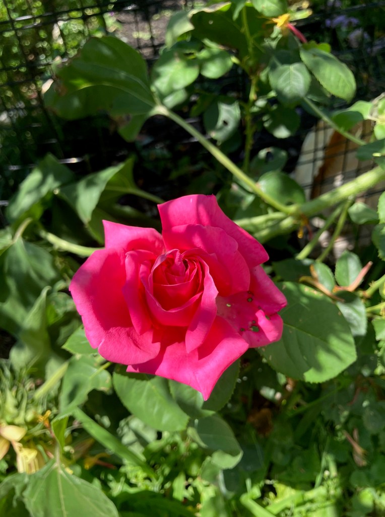 It’s called Miss All American Beauty. It was the favourite rose of an old friend who passed last year. We shared a passion for roses and when he died last July, I knew I wanted to get a hold of this rose and plant it in my garden in his honour. I thought I was going to have to order it from one of the specialty sites… so imagine my surprise when I found it in Walmart this May! And now it’s blooming around the anniversary of his death. Clearly my old friend is looking down on my garden from somewhere.