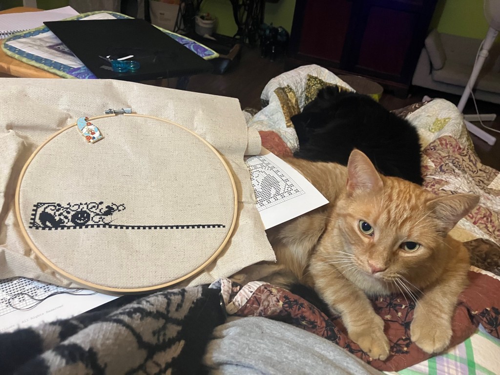We made good progress. I’d say we’re about 50% done the first section. But I’ve got socks to knit, so stitching will once again be relegated to weekend only. That should still give me enough time to get it done by the spooky season!