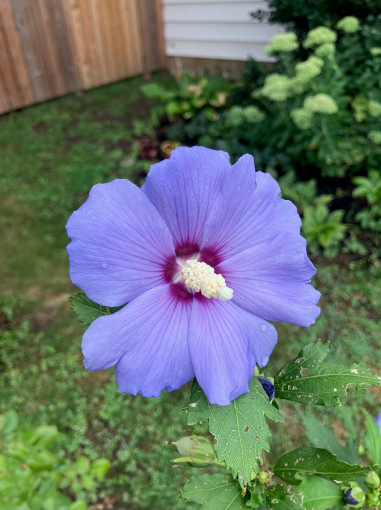 The first year here, our neighbour had some Morning Glories growing up the fence. They haven’t had them since, but they still pop up in my garden every year! I love them! And I love how their centres glow when you take a picture of them,