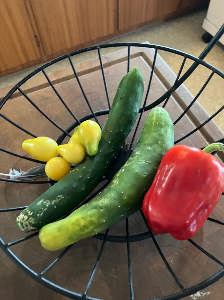 That’s a sweet little zucchini! We’re having beautiful weather here but we are back in a drought pattern so everything is drying up again. I did pick up some beautiful butternut squash at the Farmer’s Market this week that roasted up perfectly. It’s also green tomato season so I picked up a few of those to airfry for dinner tomorrow.
