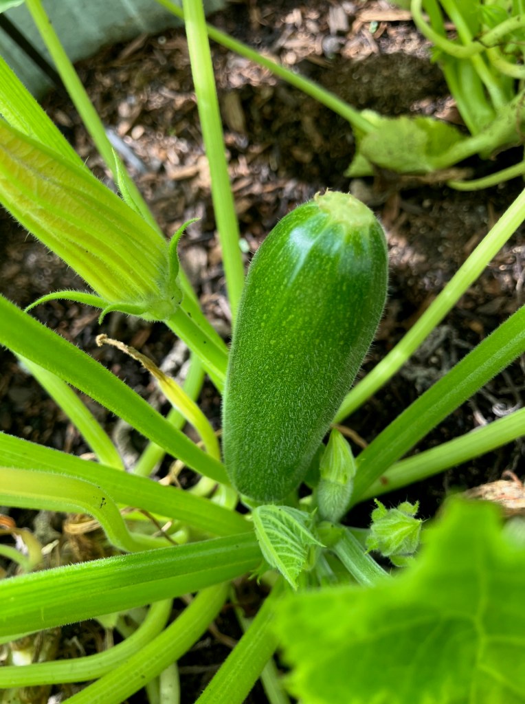 We finally got a zucchini! I added some bone meal to the pot and it seemed to help. More rain has probably made a difference too. Either way, I’ll be grilling this up for Dave in a day or two.