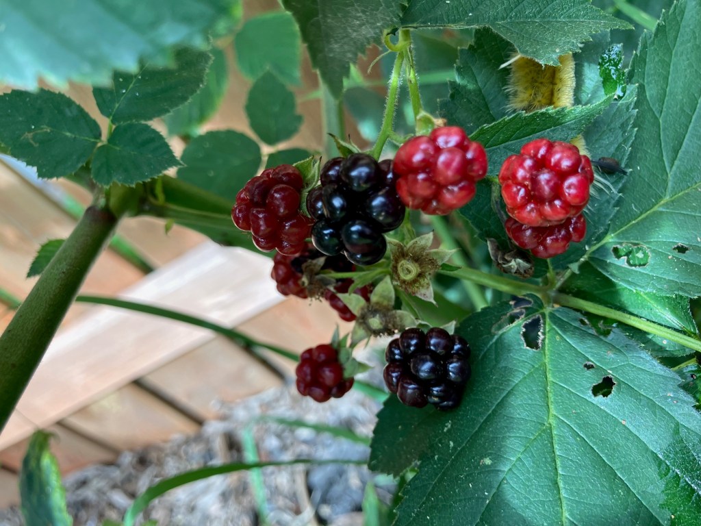 The fall berries are ripening nicely! I’ll probably do a batch of raspberry jam soon. The blackberries don’t make it in the house unfortunately.